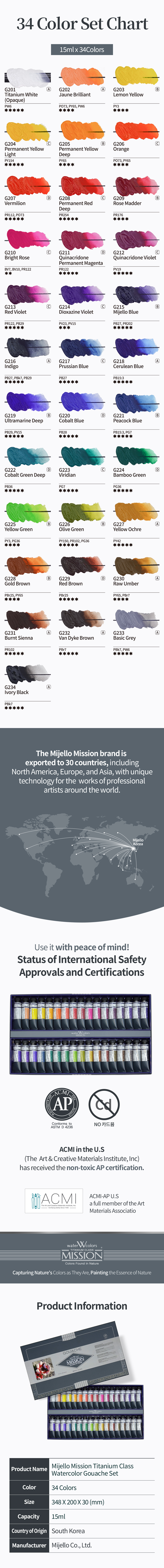 Mission Titanium Class Gouache Watercolor 15ml x 34 colorsBEST